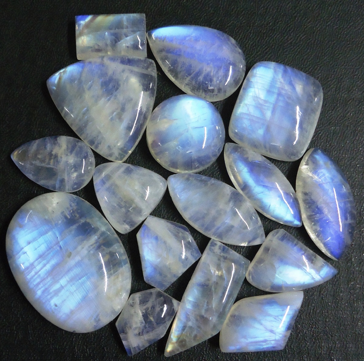 Полевые шпаты одна из самых больших групп камней к ним относятся все виды лунных камней а именно: Лабрадор, лунный камень, солнечный камень и д.р. Эта группа отличается своим оптическим эффектом, а точнее иризация-это голубое или радужное свечение, или перелив. Эффект иризации получается из-за большого количества трещенок внутри камня что и создает такой эффект.